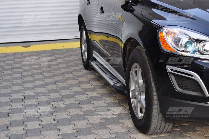 • This side step is made of an extruded silver aluminum frame and stylized molded end-caps for a finished look. • The step area is completed with black plastic board. • The installation brackets are produced by laser cutting technology for perfection from 4 mm ST052 steel sheets and galvanized.