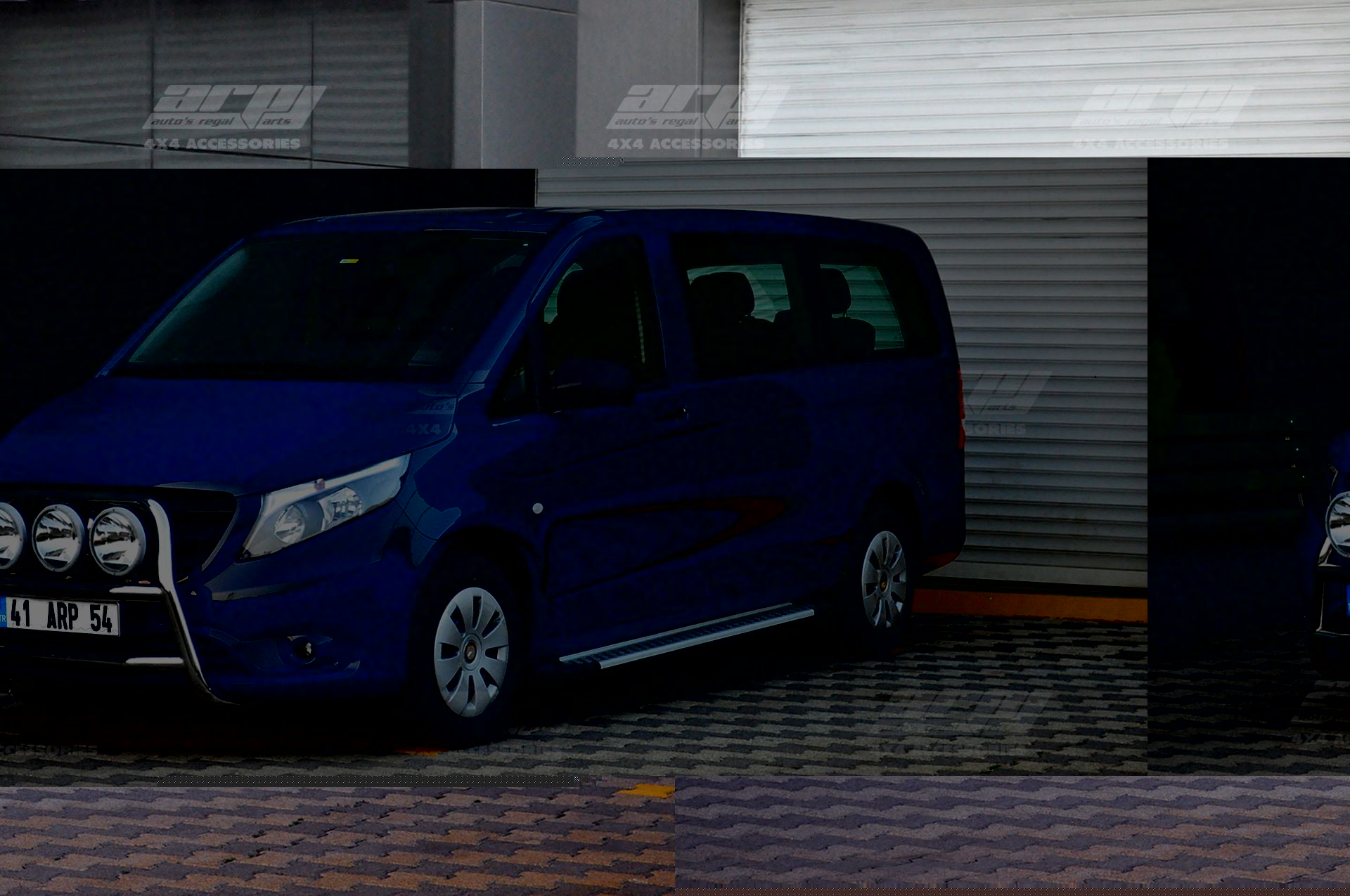 • This side step is made of an extruded silver aluminum frame and stylized molded end-caps for a finished look. • The step area is completed with black plastic board. • The installation brackets are produced by laser cutting technology for perfection from 4 mm ST052 steel sheets and galvanized.