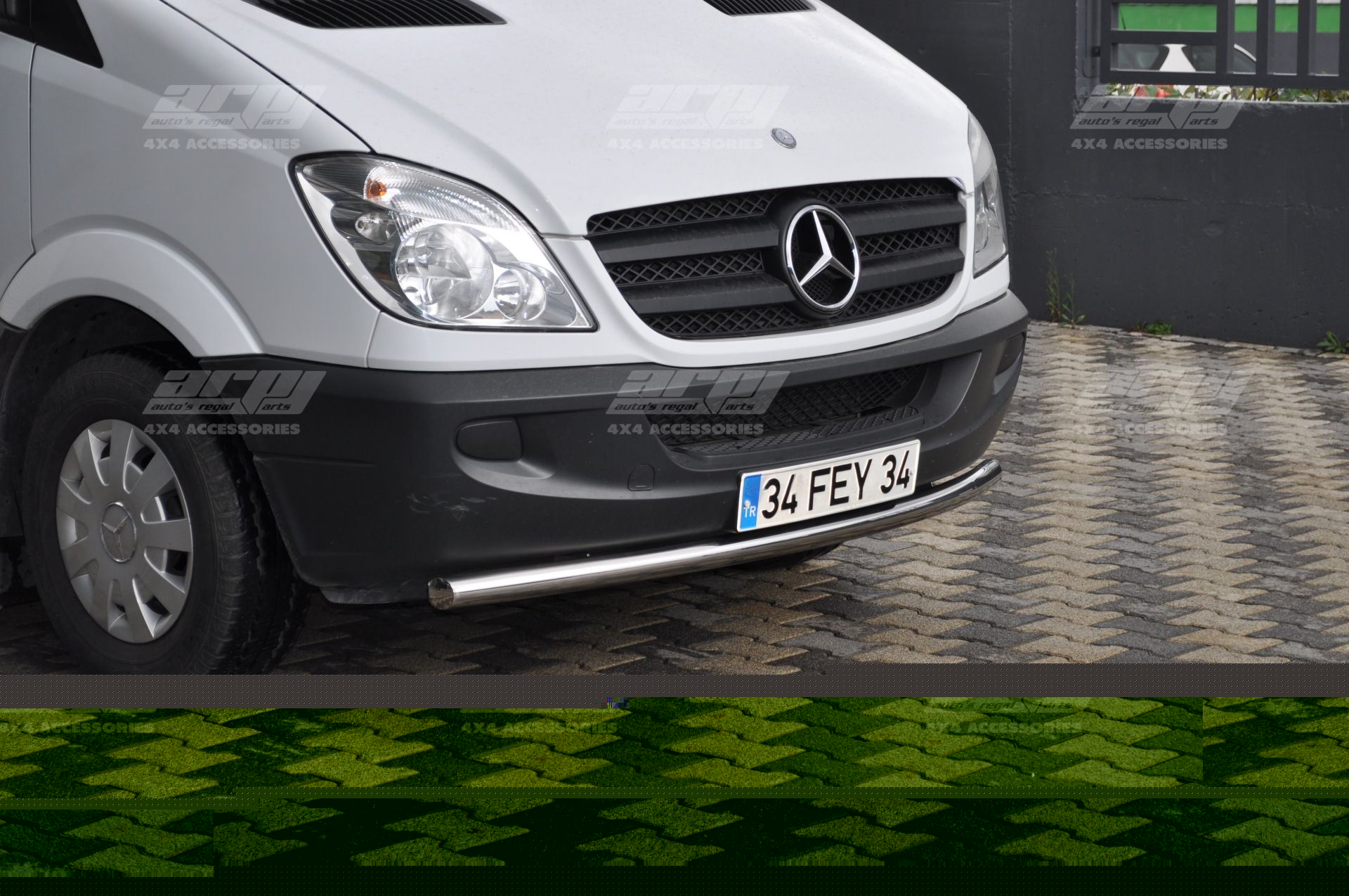 • This front guard is made of Ø 60X1,5 mm ST304 stainless steel tubes as the vehicle front bumper shape. • The installation brackets are produced by laser cutting technology for perfection from 4 mm ST052 steel sheets and galvanized.